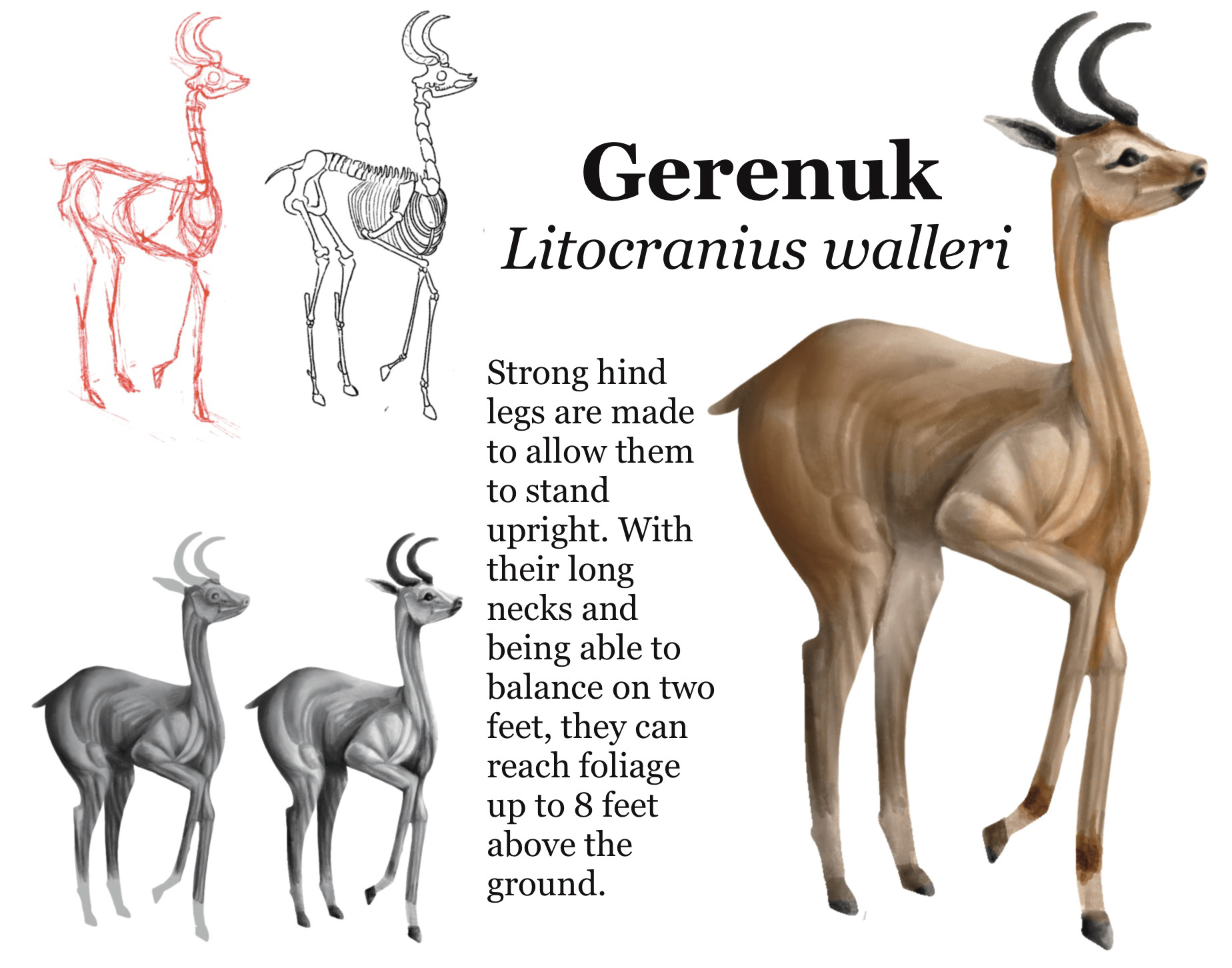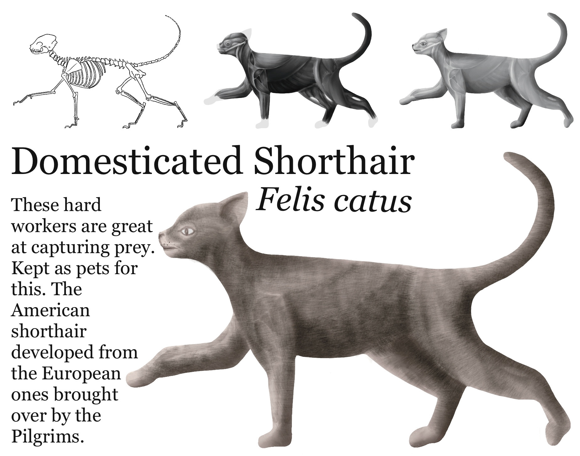 Studies of animals alive or extinct. Pieces explore the skeletal, musculature and final renderings of the animals.