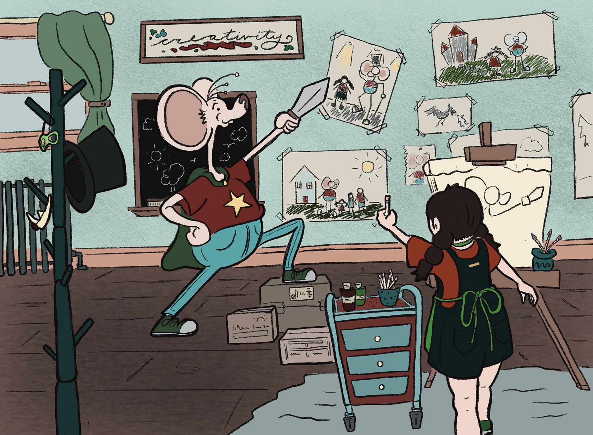 Little girl and her imaginary friend. Made for a children's book.